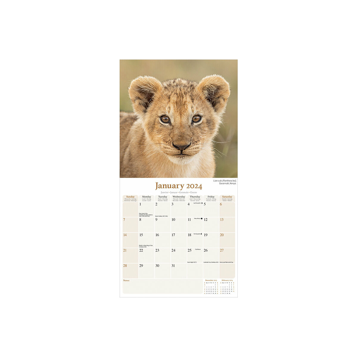 Calendrier 2024 Animaux sauvages