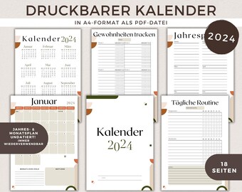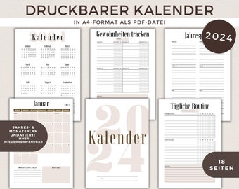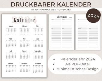 Jahreskalender 2024 Kalender Zum Ausdrucken A4 Format PDF Etsy
