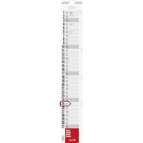 BRUNNEN Monthly Calendar 2024 1 Page = 1 Month 13 x 91 cm White